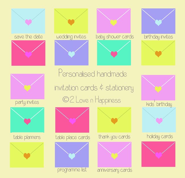 Welcome to our graphic design services for personalized invitations, stationery, thank you cards, for weddings, birthdays, baby showers, bridal showers and announcements. We will design, print and do the folding and add in the embellishments. You can also opt just only the digital artwork template and do your own printing if you wish. Customised orders are welcome. Designed and handcrafted by 2 Love n Happiness. Please enquire for further information.